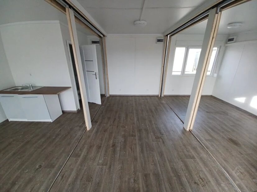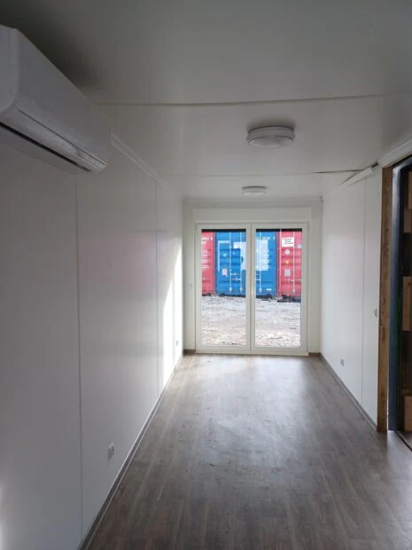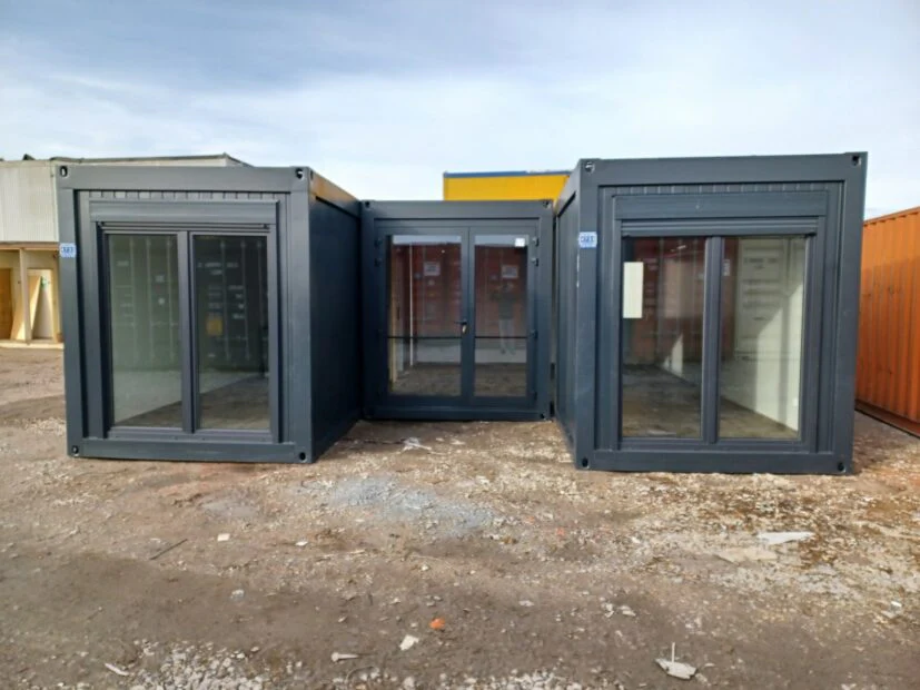 CONJUNTO DE OFICINA Y SALA DE TRIO CONTENEDORES EN FORMA DE LETRA “U” AIRE ACONDICIONADO DE BAÑO (50 m²)
